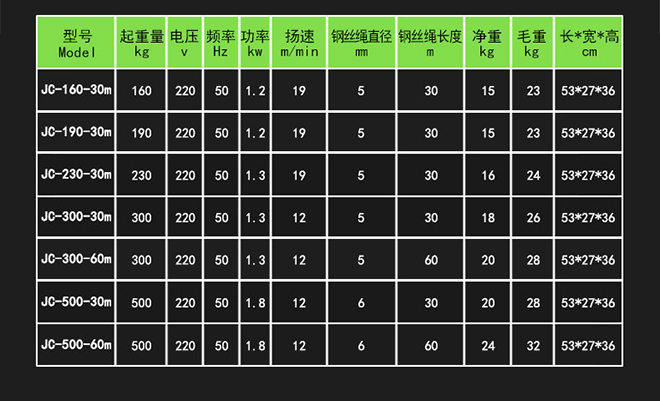 懸掛式微型電動葫蘆規(guī)格參數(shù)分為100kg,150kg,200kg,250kg,200kg,400kg,500kg,600kg,800kg,1000kg,個性化需求可來樣定制。
