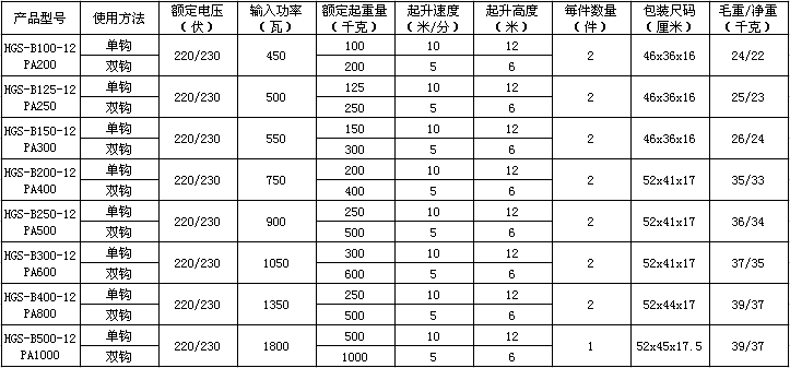 這款產(chǎn)品具有單吊物品和雙吊物品的雙重功能。單吊小為100公斤,雙吊為200公斤。