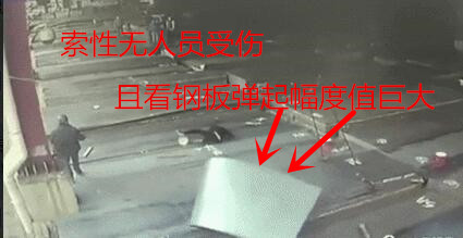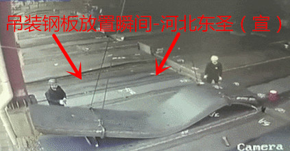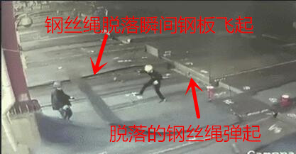 張圖片可以看出,兩名施工人員在操作鋼板起重吊裝過程中,鋼板放置在地面之前已經(jīng)出現(xiàn)明顯彎曲現(xiàn)象,這種彎曲現(xiàn)象發(fā)生大大提高了鋼板反彈力,并且吊裝鋼板的左右兩組鋼絲繩之間夾角已經(jīng)明顯大于60度。根據(jù)鋼板吊裝安全細(xì)則明確標(biāo)注,吊裝鋼板用其兩組鉗之間夾角不應(yīng)超過45°,肢間夾角不超過60°,避免一側(cè)裝夾不牢起吊時彈出傷人。顯然圖片上鋼板起重吊裝方式存在瑕疵,導(dǎo)致鋼板彈出,索性無人員受傷。