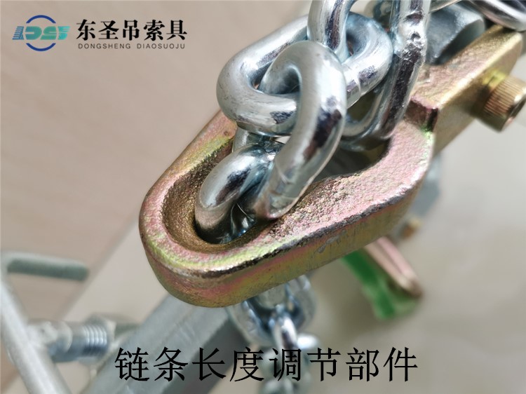 - 鏈條式吊夾 鏈條式吊夾也叫吊鏈?zhǔn)降鯅A,其有兩塊主夾板,中間用螺栓連接,兩端用鏈條連接在一起,鏈條用于掛在吊鉤上。利用這兩個(gè)主夾板的杠桿作用來夾持物體。